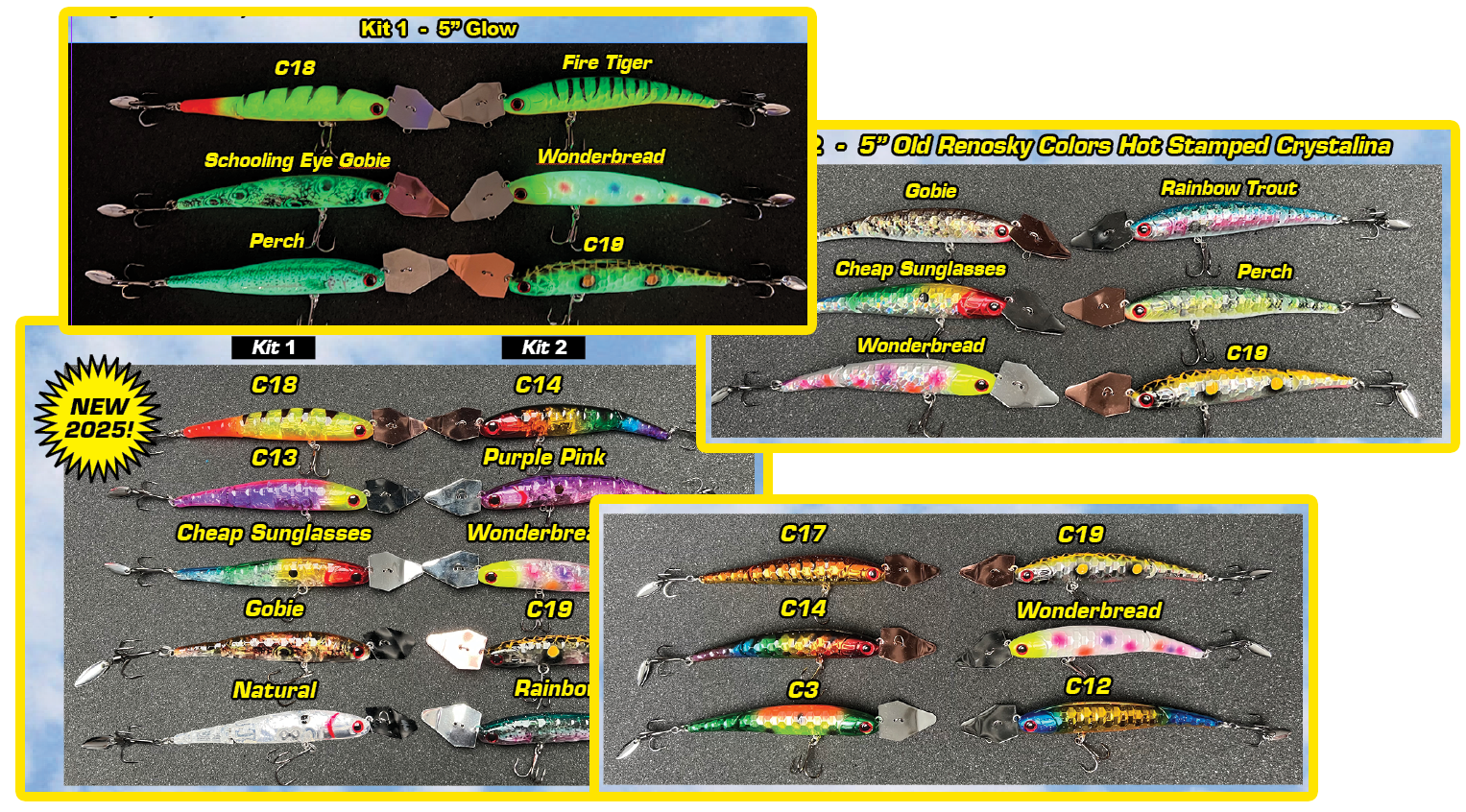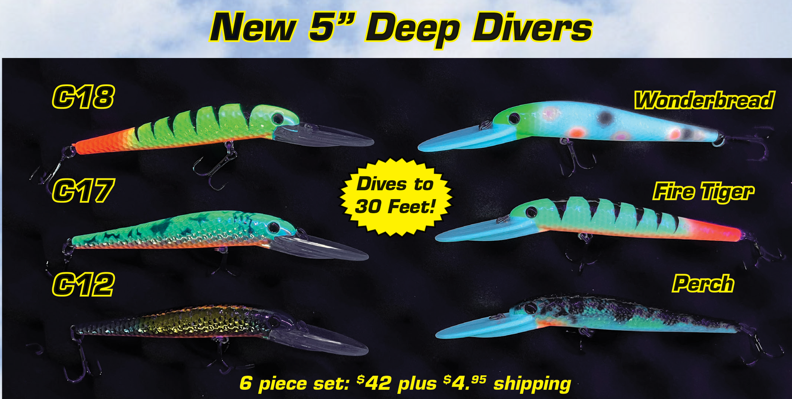 Five Vibrant Patterns: Includes Rainbow, Patriot, Perch, Sunfish, and Dace patterns for versatile fishing. Choose 2" or 3".