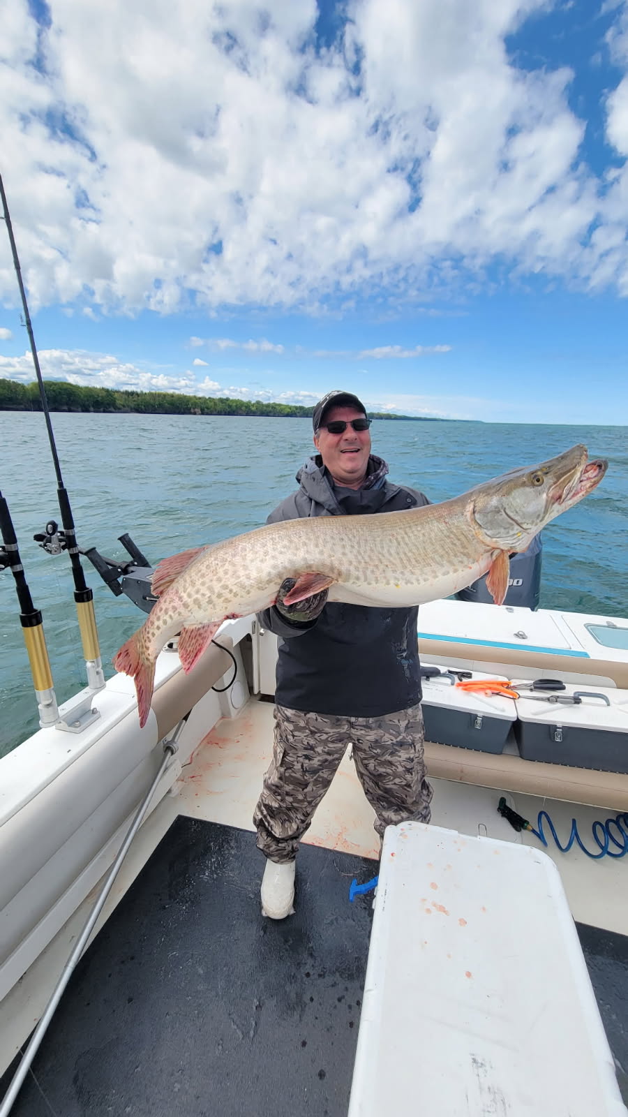 The musky that struck that day was a true brute, its size and power a testament to both the health of Lake Erie’s fishery and the effectiveness of the Reno Rocker. The excitement on the boat was palpable as the team worked together to land their prize, adding yet another unforgettable chapter to their fishing adventures.